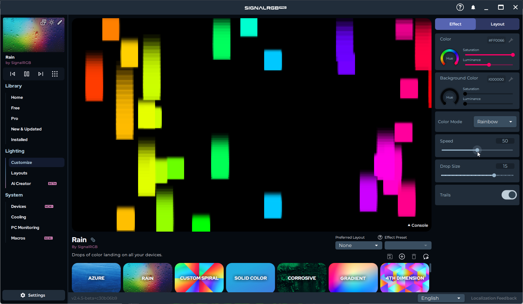 All SignalRGB effects can be customized on the Customize page. You can modify an effect to look completely different from how it looks by default.