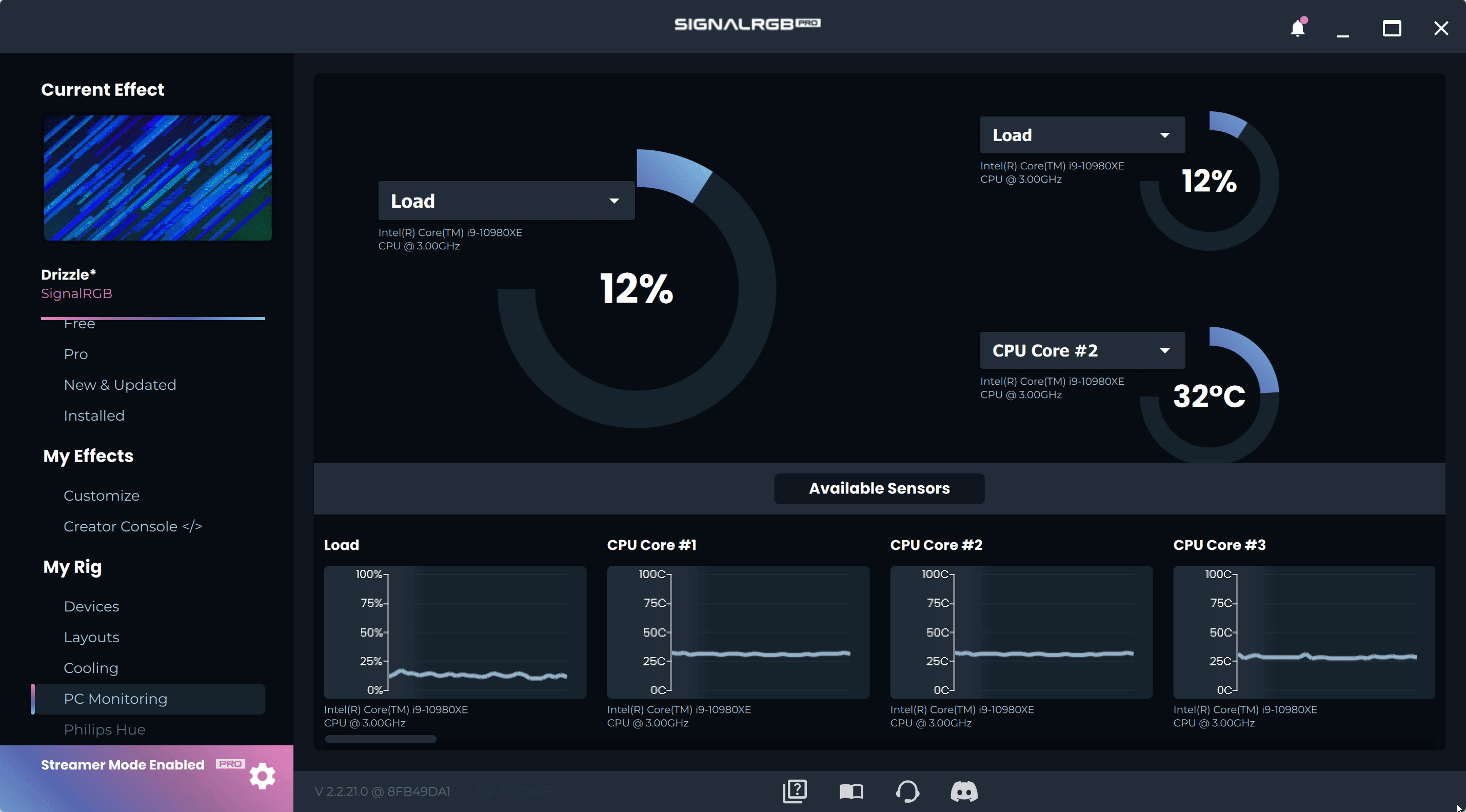 System Monitoring is a SignalRGB Pro exclusive feature that can monitor and display system information such as CPU temperatures, clock speeds, and more. It has several customizable graphs as well that allow you to easily monitor some preferred statistics.