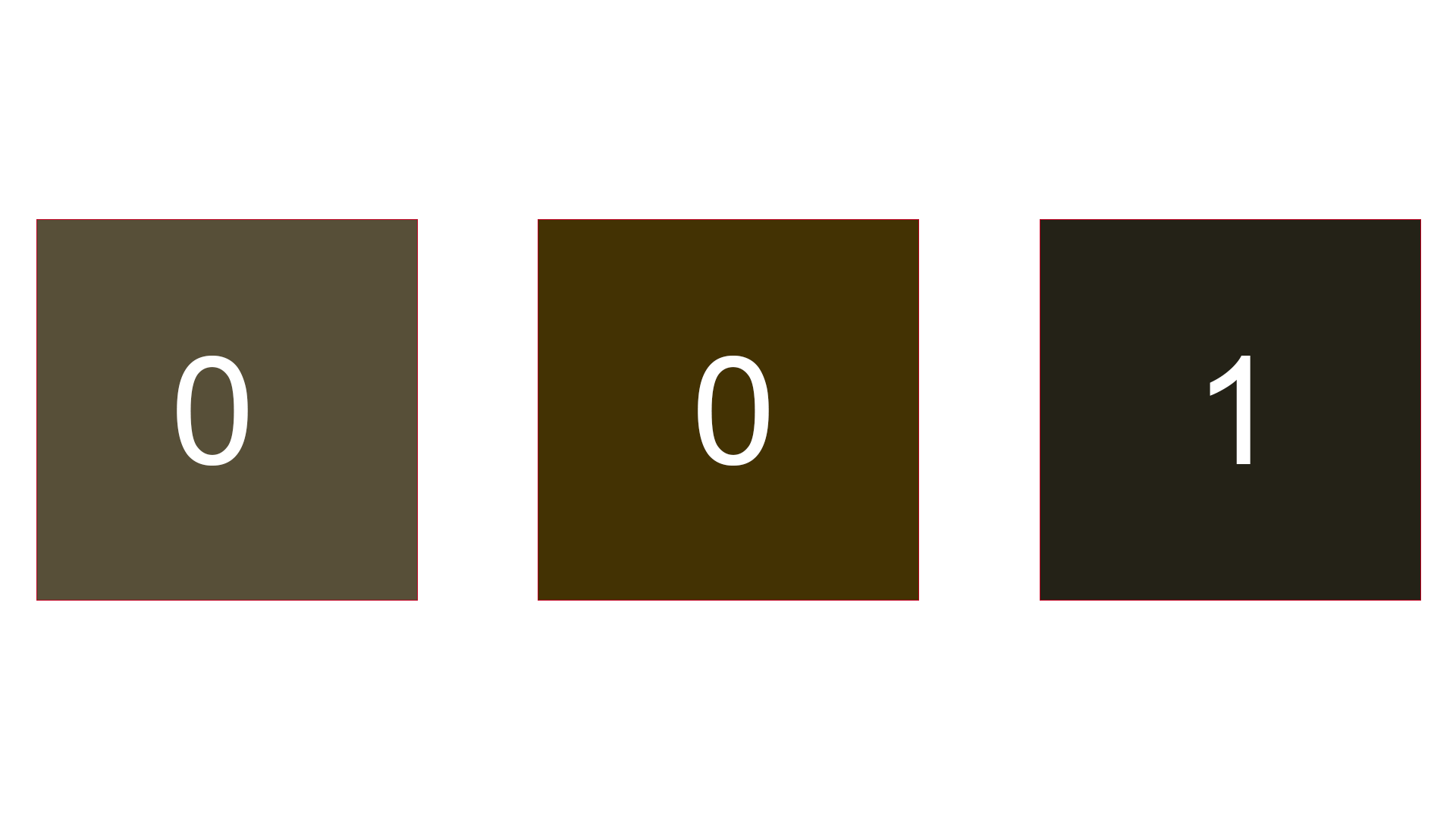 I’ve chosen the original colors as the passing color, so this arrangement of bits is equal to 111, or “6”. None passing, or 000, would be “0”.