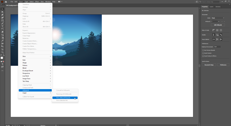 Next, import your reference image into the new artboard by clicking File -> Place in the toolbar and then choosing your image in the popup that appears.