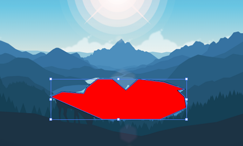 In this example, I will trace out the outline of the pond and fill it with a solid color. To start, select the pen tool by pressing P on your keyboard. Click a point along the outline of the shape you would like to trace, and then begin adding more points until you have made a continuous path the same shape and size as your chosen shape. The color of this shape does not matter, as you will be setting the color separately in the JavaScript code.