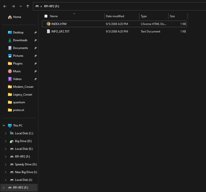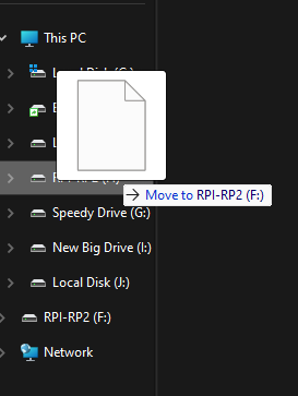 - Take the firmware file for your device and drag it into the RPI-RP2 drive.