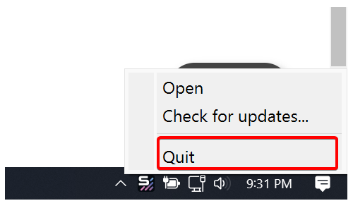 - Exit SignalRGB by right-clicking the tray icon and choosing Quit.
