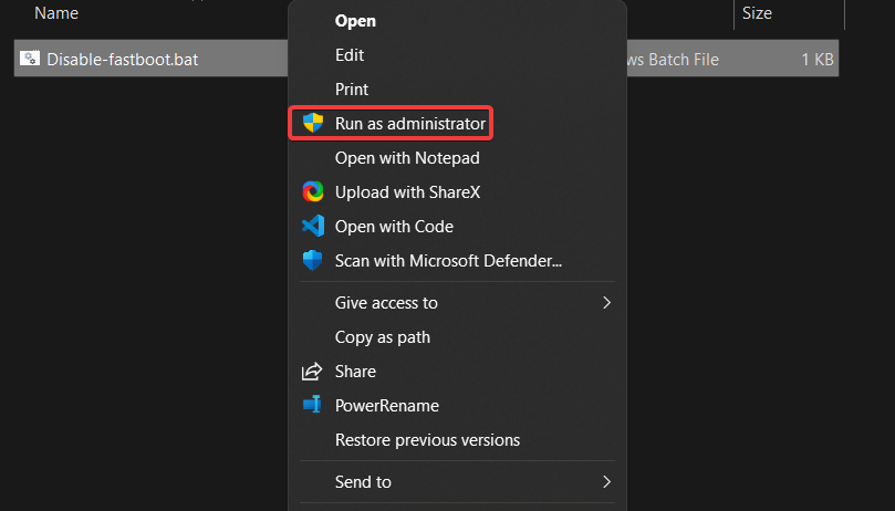 Section titled “Disabling Fast Boot”To disable fast boot, create a new file named Disable-fastboot.bat and paste the following code into it: