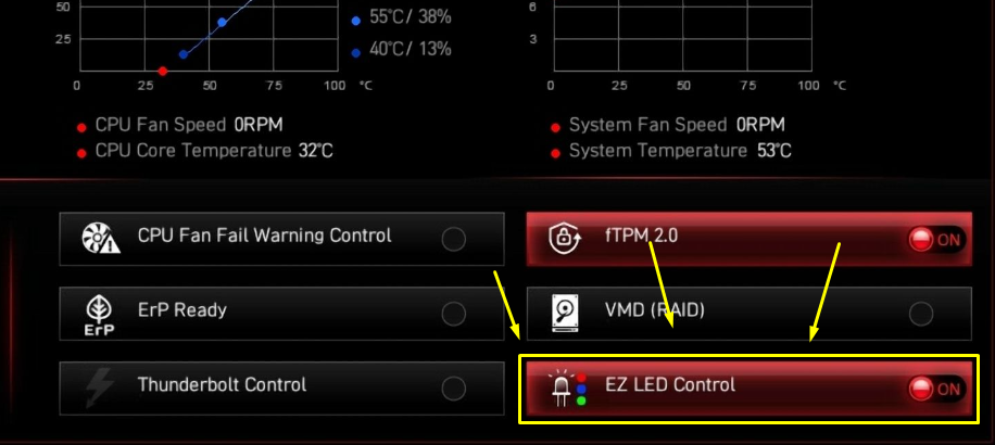 Make sure to check if LEDs are enabled on BIOS after uninstalling the Center app; it is either “RGB Light Control” or “EZ LED Control”:
